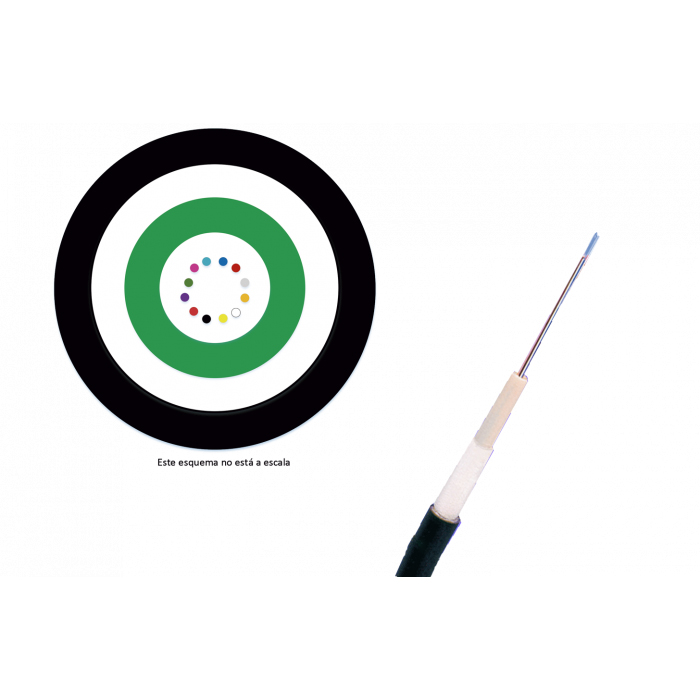 Cable de fibra óptica en estructura holgada formado por un tubo relleno de gel hidrófugo (anti-humedad) que permite incluir en su interior 24 fibras ópticas. El núcleo óptico se protege con un refuerzo de fibra de vidrio compactada y una cubierta de fleje de acero corrugado para darle gran robustez y resistencia contra roedores. Las fibras ópticas de su interior van coloreadas para su fácil identificación. Está fabricado y testeado bajo las especificaciones de estanqueidad IEC 60794.
