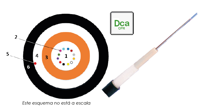 - 1: fibras ópticas en estructura holgada de 250 μ m