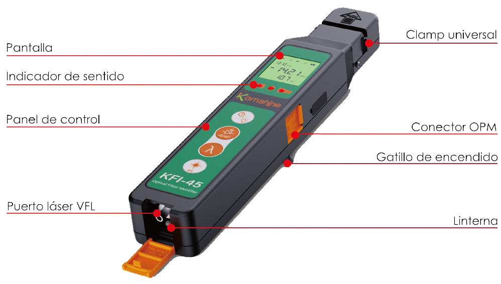 F/KFI-45 Pinza identificación tráfico (10/-40 dBm) con clamp universal, OPM, VFL y linterna