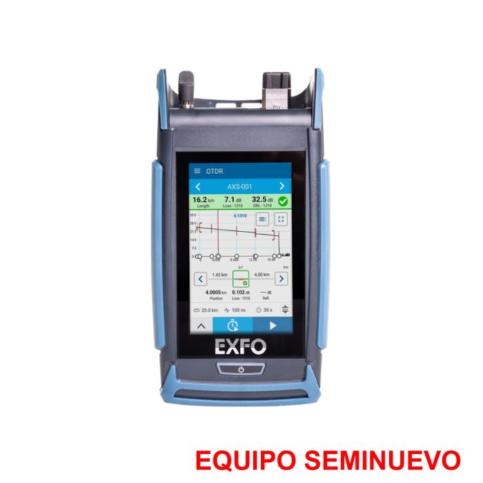SEMINUEVO Mini OTDR AXS-120 SM 1310/1550nm 35/33dB con softwares OTDR+OLM, OLS, OPM SM en servicio y VFL
